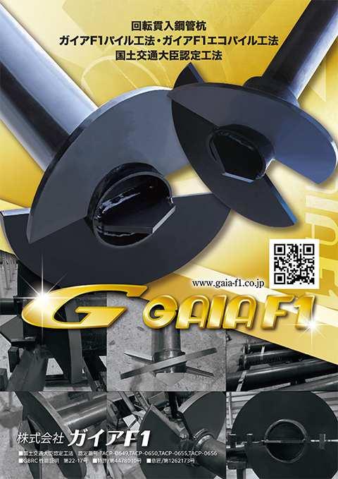 - 法の概要:ガイアF1 パイル工法は、鋼管の先端に掘削刃と半円形の拡翼を溶接接続した基礎杭を、地盤中に回転貫入させて設置する工法です。